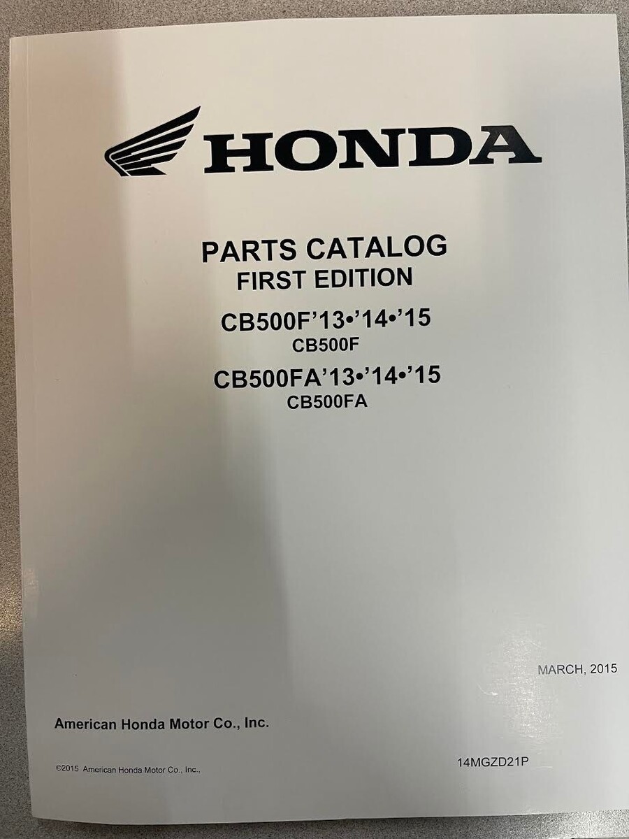 2013 2014 2015 Honda CB500F CB500FA Parts Catalog Manual