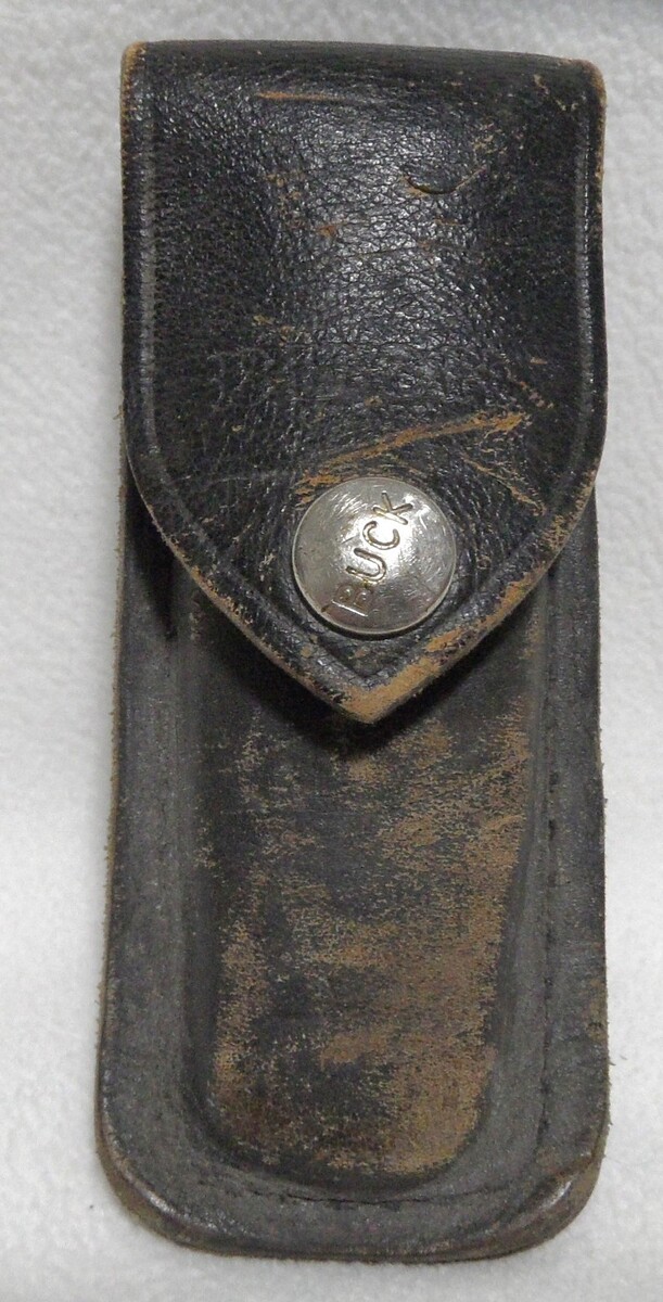 (1) Buck 500 USA - Pre-date code, has english script stamped on tang. 4-1/4" closed, 7-1/4" open folding lock blade,1977-1978, burgandy micarta scales, SST bolsters, solid lock, no wobble nor blade play. Has original 500 Sheath, worn sheath still usable.