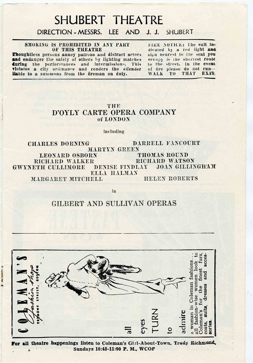 Playtime D'Oyly Carte Opera Company Shubert Theatre Boston 1948