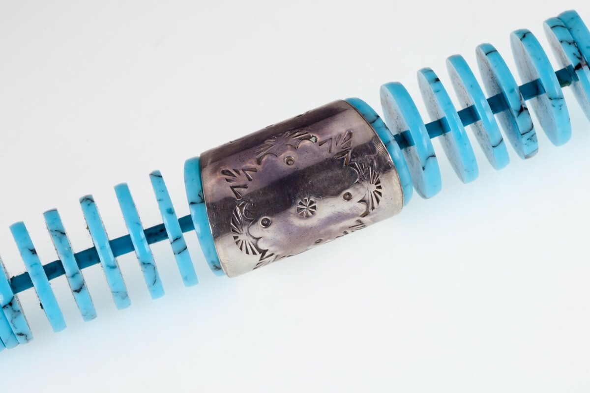 Gorgeous Disk Turquoise Beaded Navajo Necklace with Silver Accents