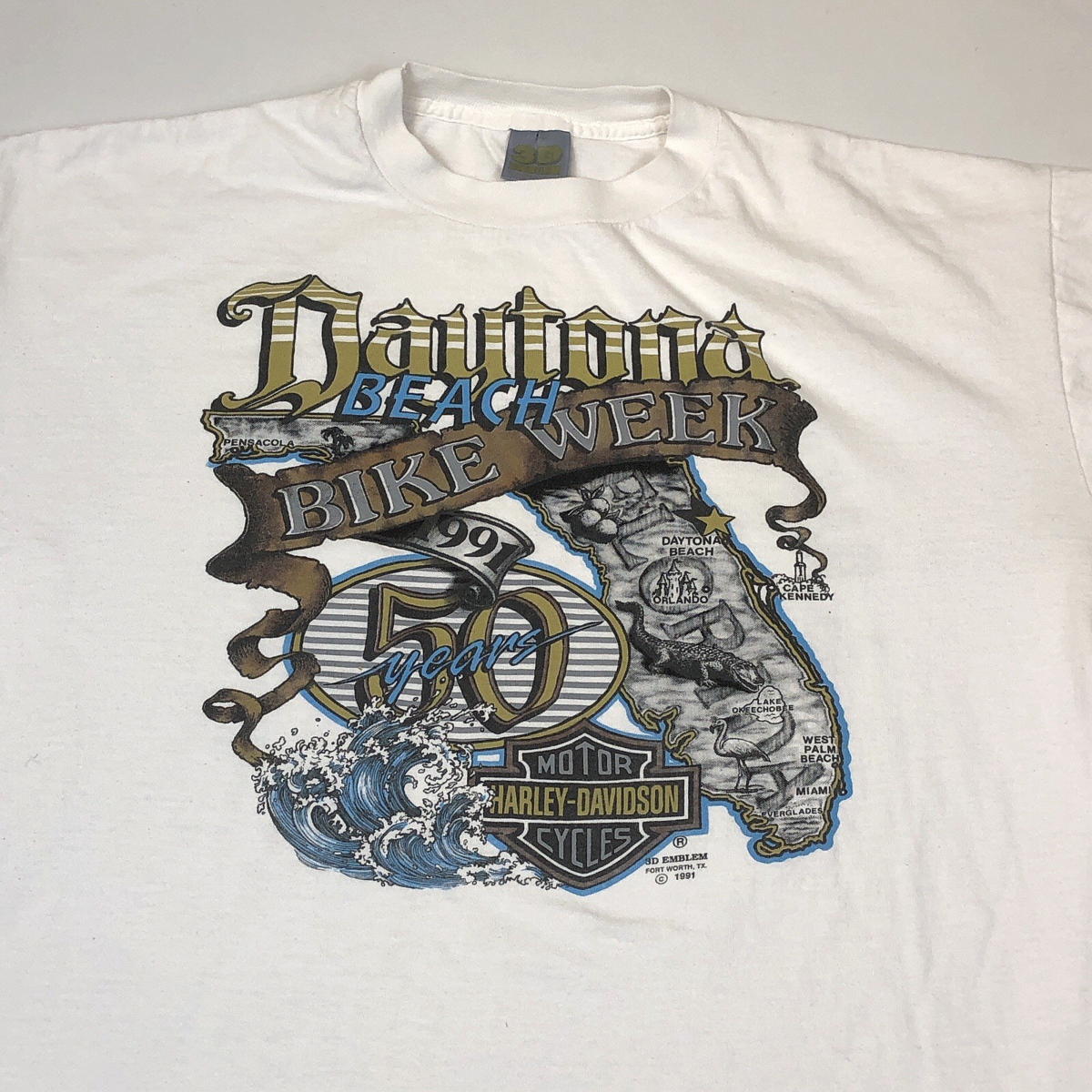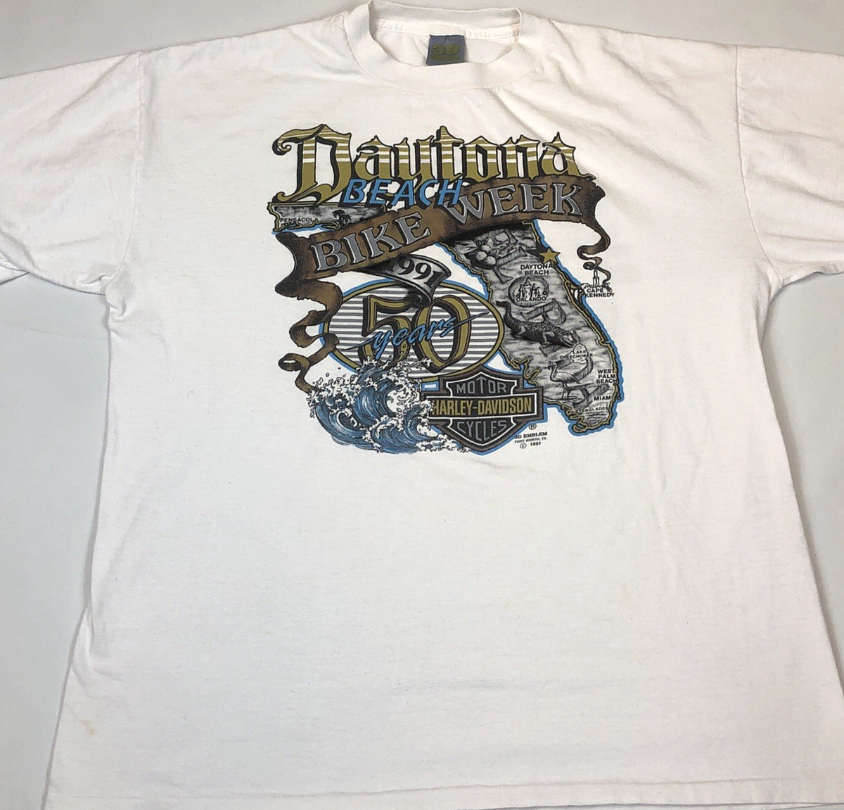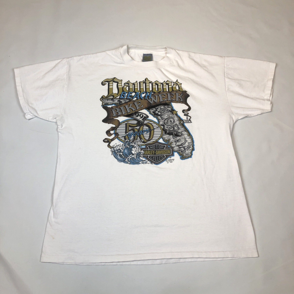 Vintage 1991 Harley Davidson 3D Emblem Bike Week Daytona 50 Years Size XL USA