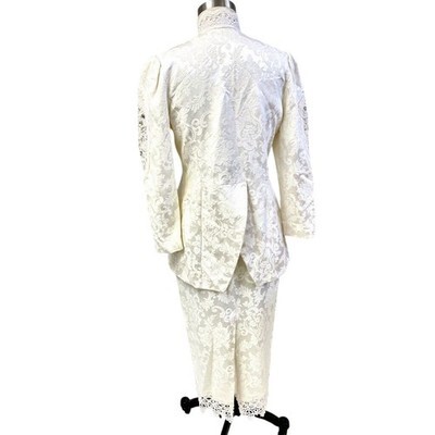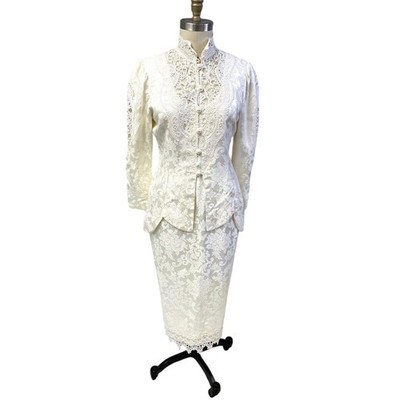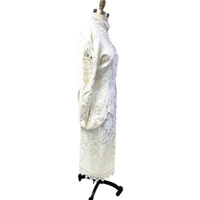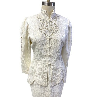 VTG 1980s Jessica McClintock Ivory Bridal Suit Lace Beaded Victoriana Wedding 12
