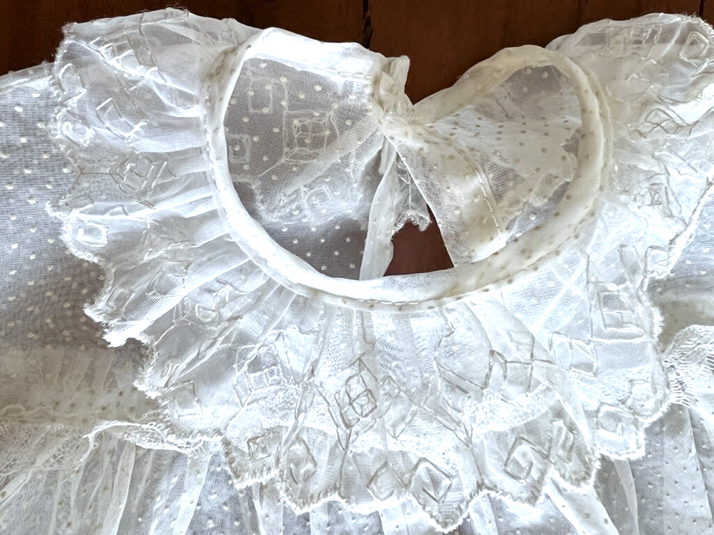 VTG 1950s Baby Girl White Nylon Dotted Swiss Party Dress Sz 1T As Found Yellowed