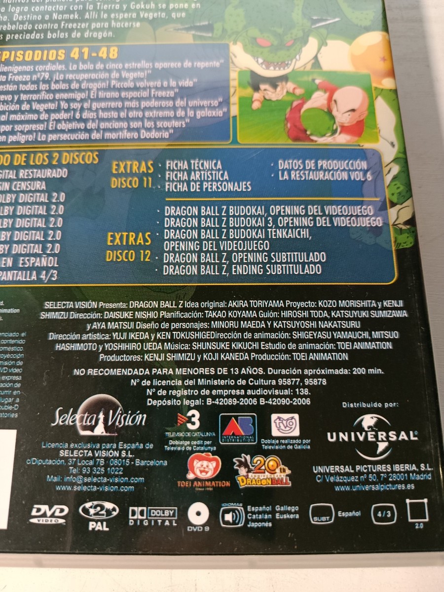 This edition in DVD Region 2 collects eight classic episodes de DRAGON BALL Z que They are part de the de los, moment que elLA HISTORIA becomes more intense and the battles reachun epic level. con audio in Spanish and Japanese, es ideal para both classic de collectors como para those who wish to revive the series in its traditional physical format. DRAGON BALL Z, de Saga, Episodes 41?48, 2DVD, Region 2, PAL, Spanish, Japanese, Classic anime, losde television, Selecta Vision, anime DVD, EAN (si available), DBZ DVD Collection, Japanese Anime, Goku, Z Warrior, Vegeta, Nappa Please, si upon receiving el itemno are you satisfiedcon your status, contact usantesde leave neutral or negative feedback. We will resolve any problem quickly and con personalized attention. We are based in Spain and off