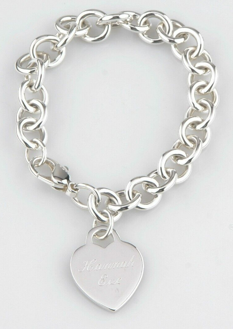 Tiffany Co. Sterling Silver Blank Heart Tag Charm Bracelet 7.5" Engraved