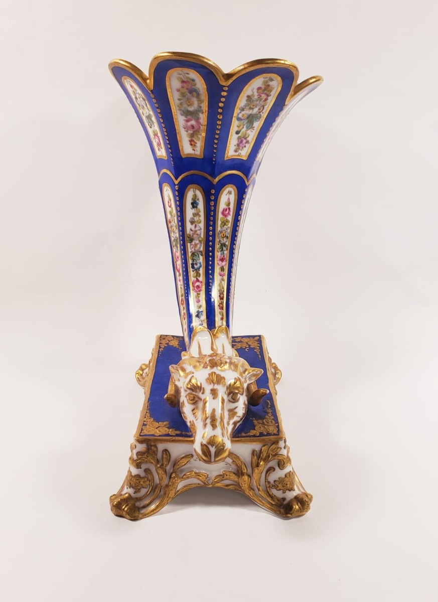 Gorgeous French Limoges Porcelain Cornucopia Ram Head Vase
