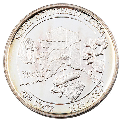 ALASKA 1959-1984 SILVER ANNIVERSARY PROOF .999 SILVER 1 TROY OUNCE CALIFORNIA BUYERS: 9 % SALES TAX WILL BE ADDED INSURANCE DELIVERY CONFIRMATION OR SIGNATURE CONFIRMATION Please call us with any Inquiries: Continental Coin and Jewelry Company Web Department: Monday thru Friday, from 10:30am-6pm (818-781-4232) Reference Item # SCU-1180 on multiple purchases. would not be combined. We appreciate your understanding. 1/20/14SE