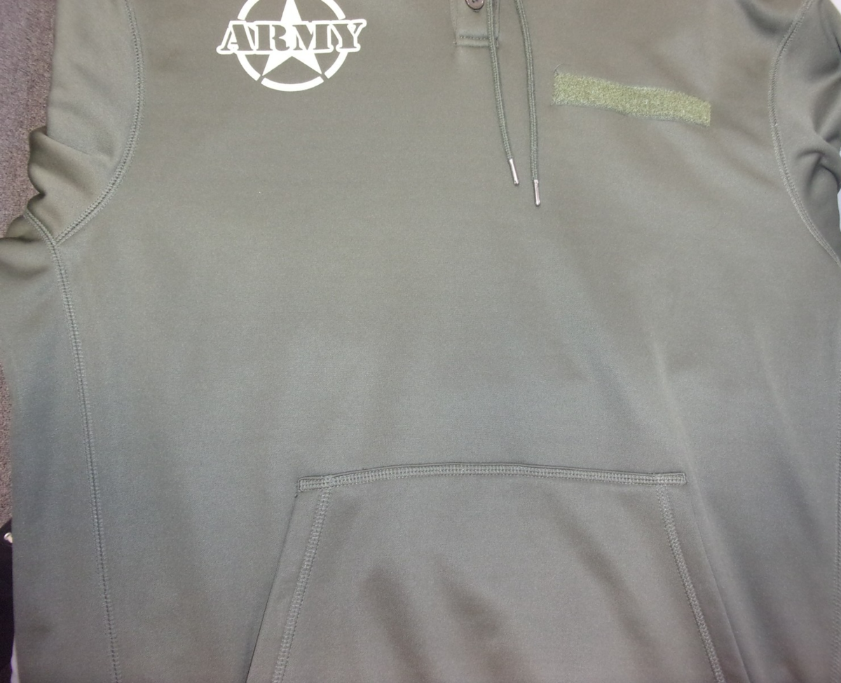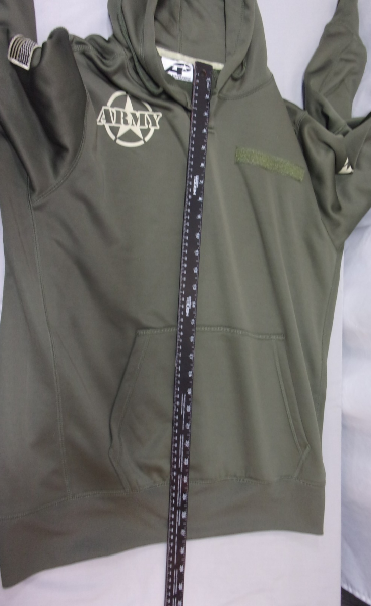 ARMY PERFORMANCE OD GREEN U.S. FLAG PULLOVER HOODIE W/ NAME TAPE MEN'S LARGE