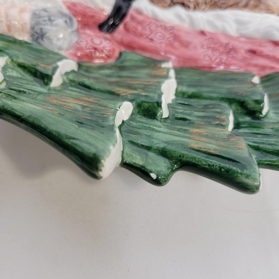FITZ & FLOYD 1991 Omnibus - Vintage Santa and Bear Serving Plate Holiday Decor