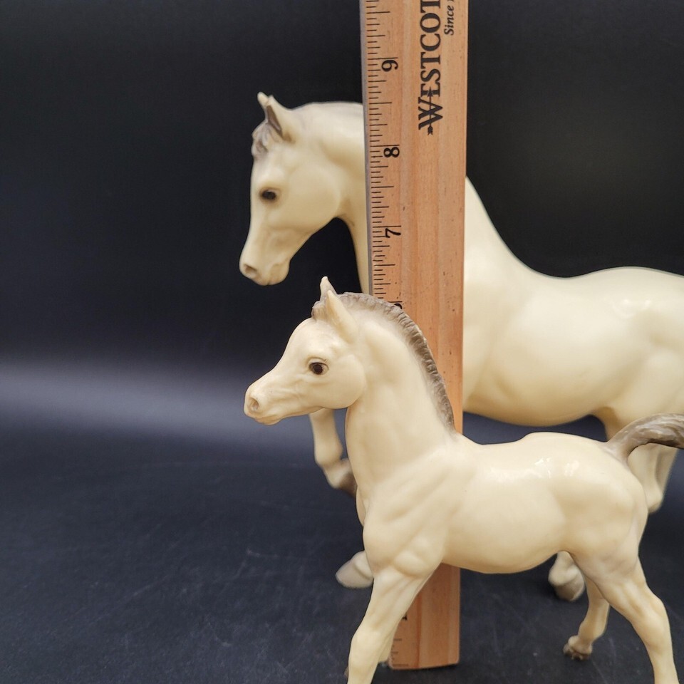 Two Vintage Breyer Horse Arabian Mare & Baby Foal Horses Alabaster Gray White