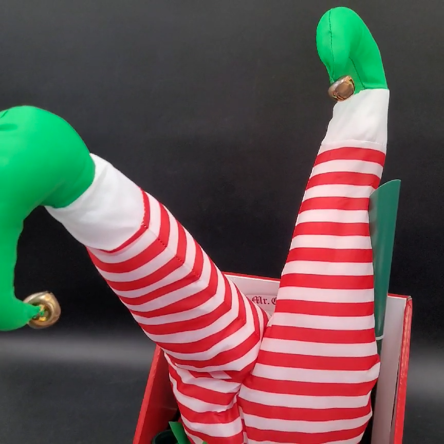 New Mr Christmas Holiday Red White Elf Tree Kicker Motion Activated Kicking Legs