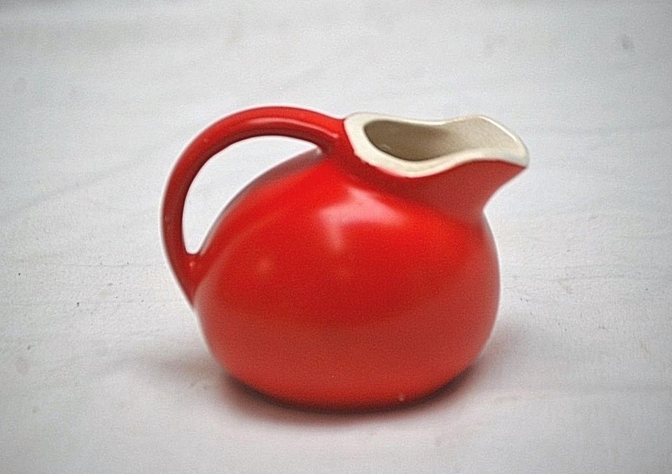 Old Vintage Small Orange Ball Jug Pitcher Creamer Hall Style Art Pottery MCM