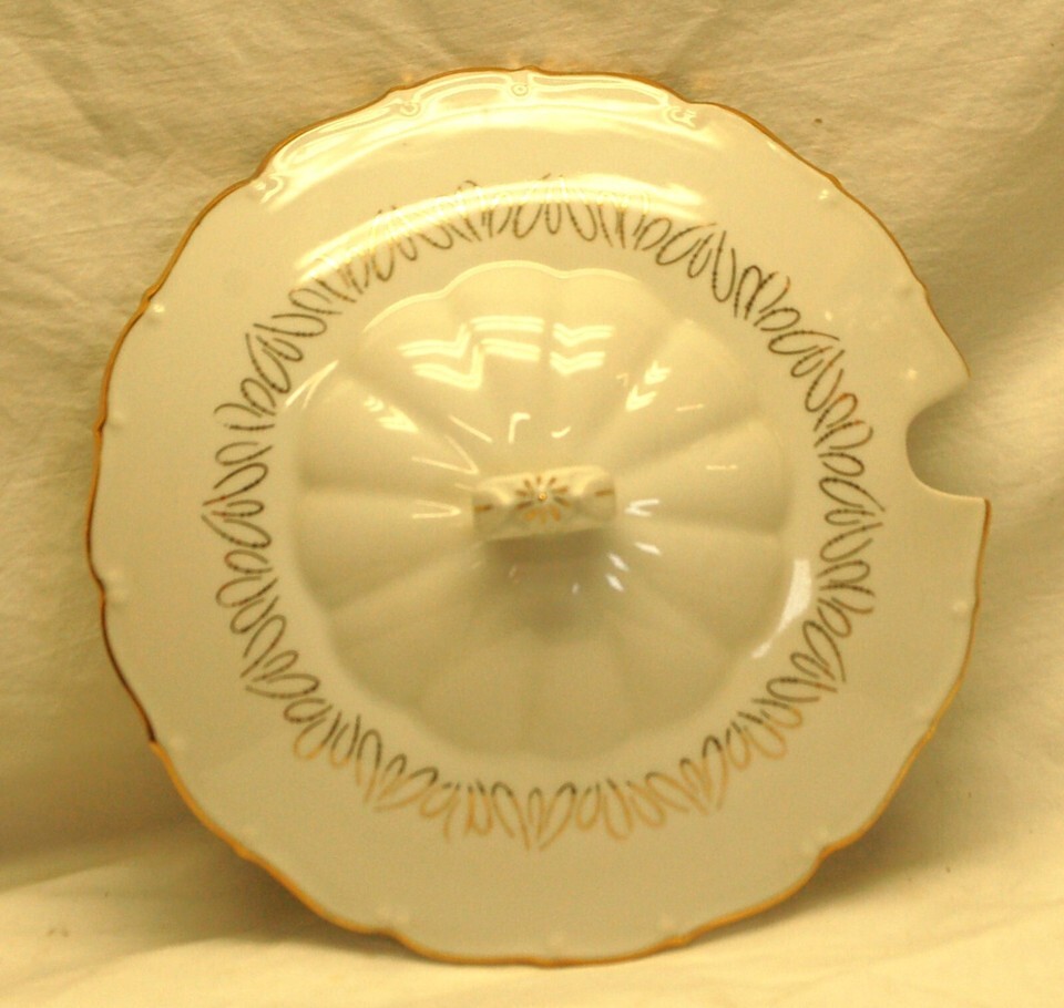 Czechoslovakia Soup Tureen Lid Gold Abstract Loops & Trim