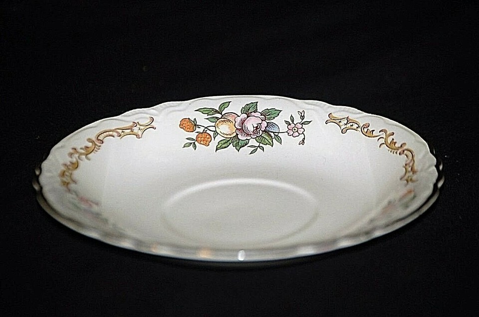 Saucer Plate by Homer Laughlin Fruit Floral Pattern Scalloped Edges USA Vintage