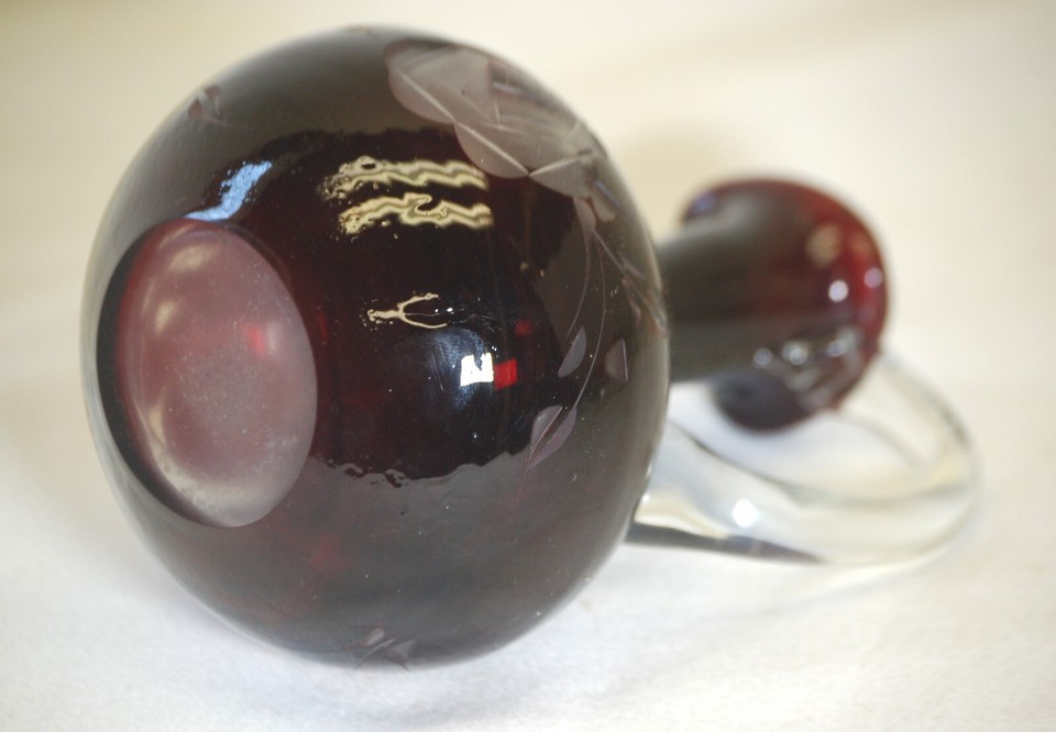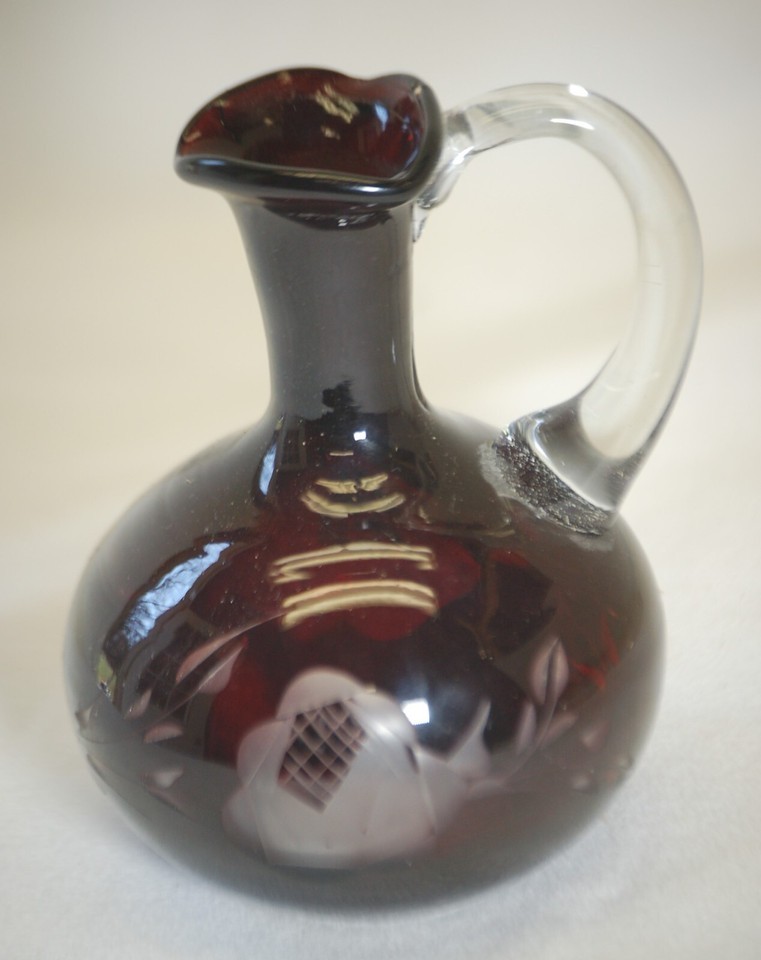 Ruby Red Cut to Clear Glass Cruet Floral and 11 similar items