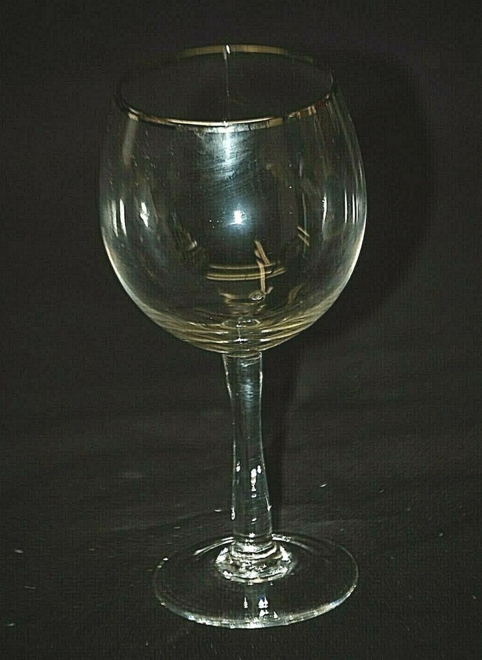 Long Stem Wine Goblet Platinum Trim Clear Glass 6-1/4" Unknown Maker