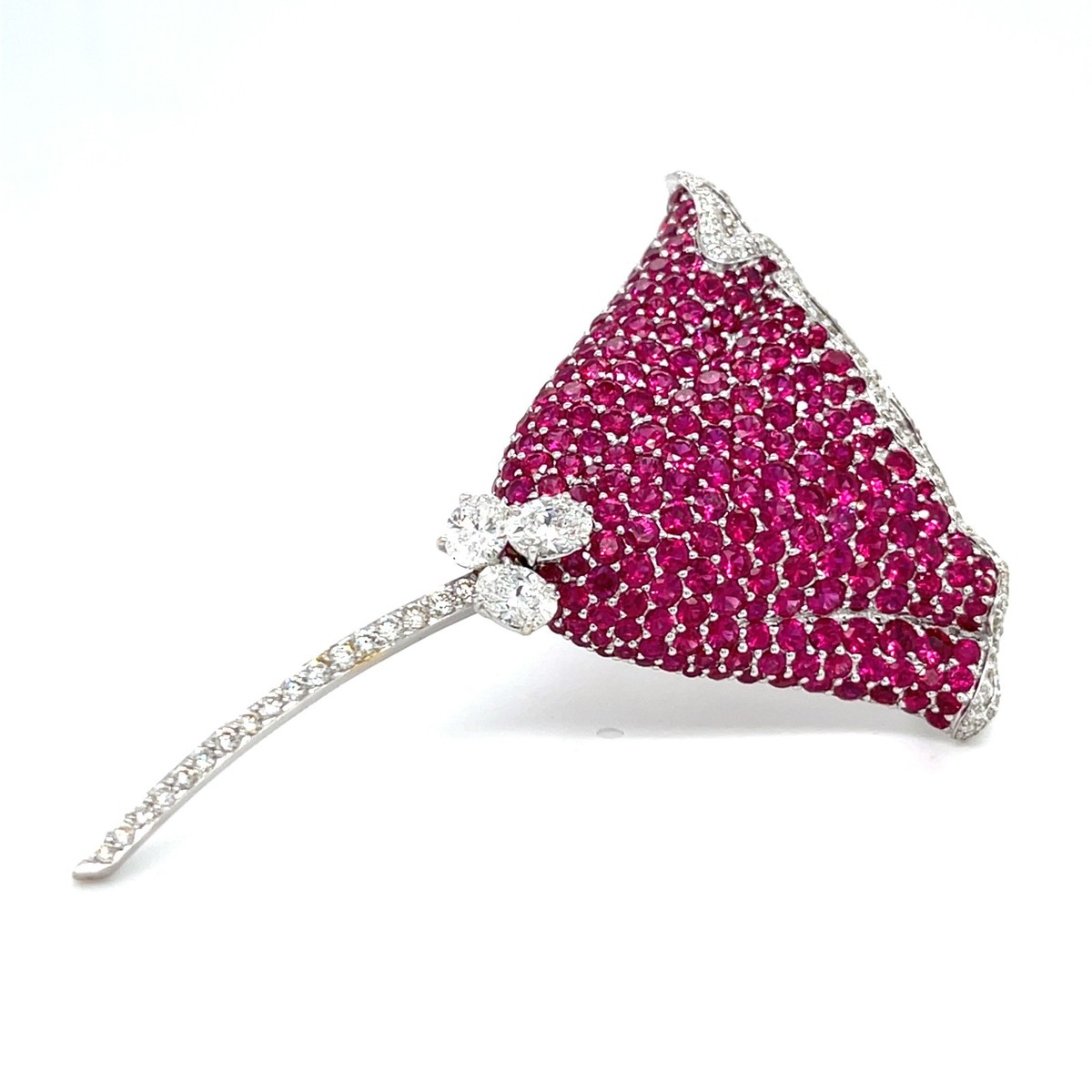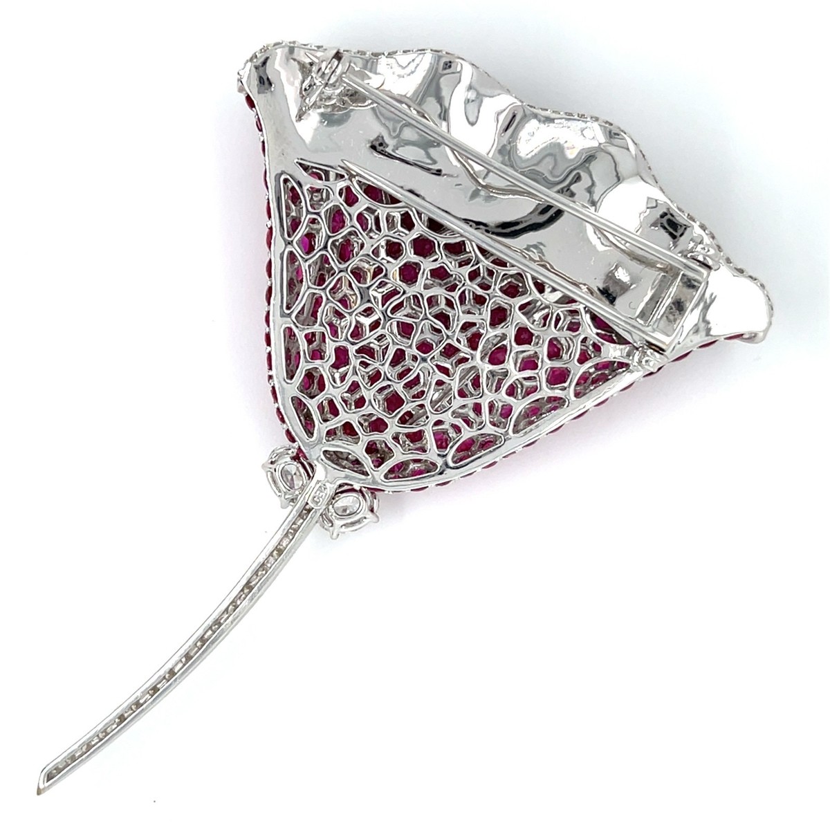 Atemberaubend 18k Weiss Gold Ruby und Diamant Blumenmuster Brosche 11.50 Karat