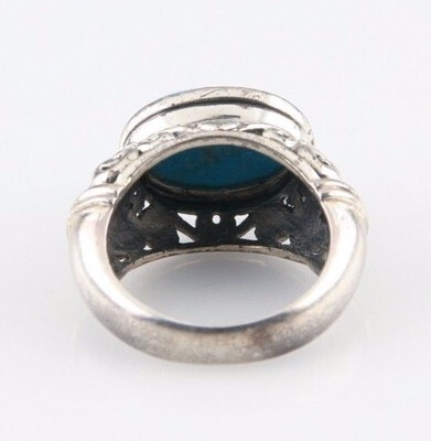 Vintage-Ring aus Sterlingsilber mit ovalem hellblauem Türkis (Große 6), aufwendig