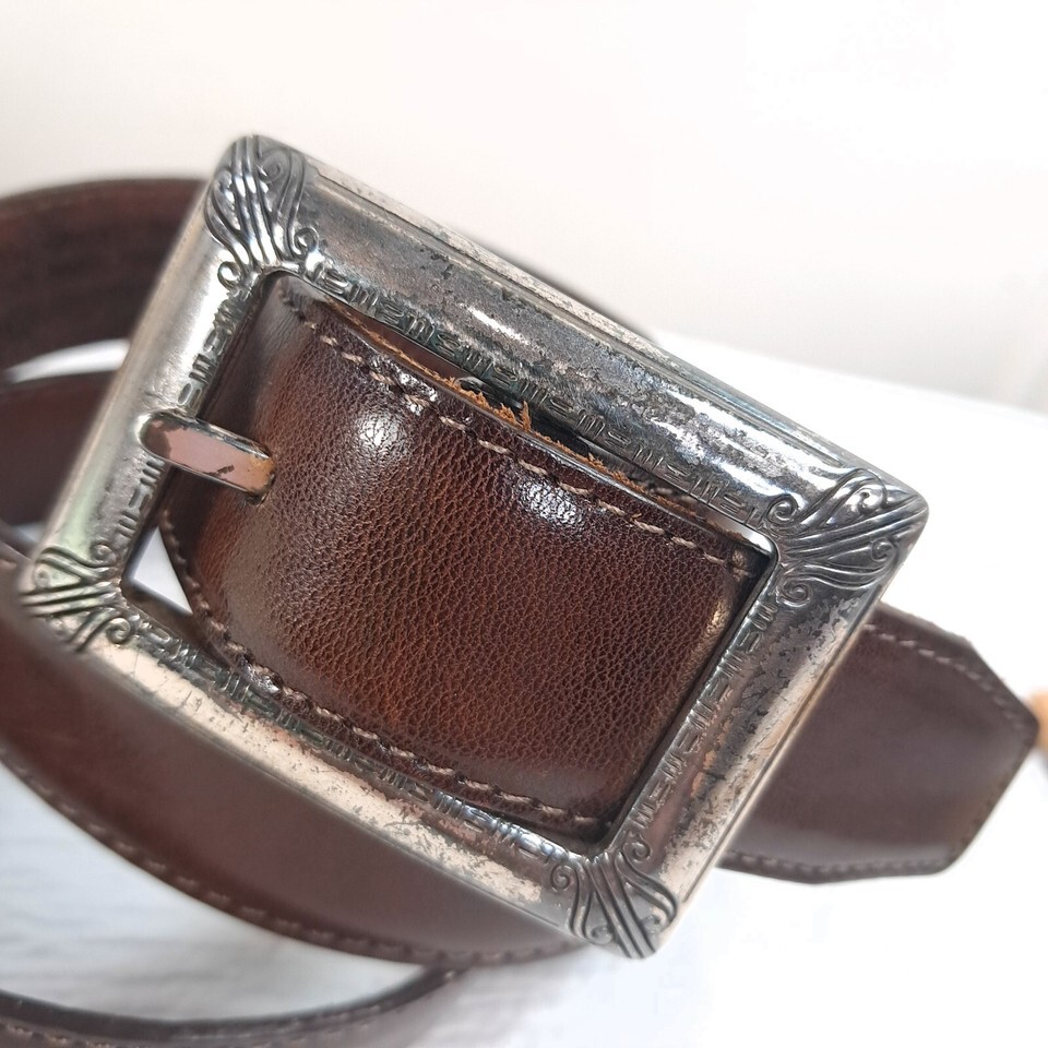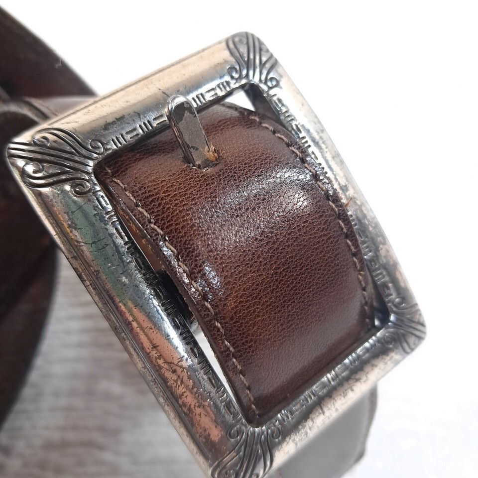 Eddie Bauer Leather Belt womens sz M Medium Brown Leather silver buckle USA 2191
