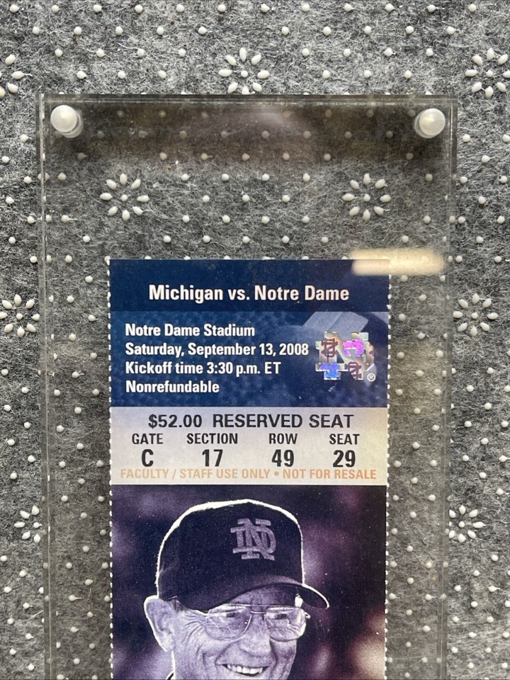 2008 Michigan Wolverines vs Notre Dame Fighting Irish Ticket Stub CV JD