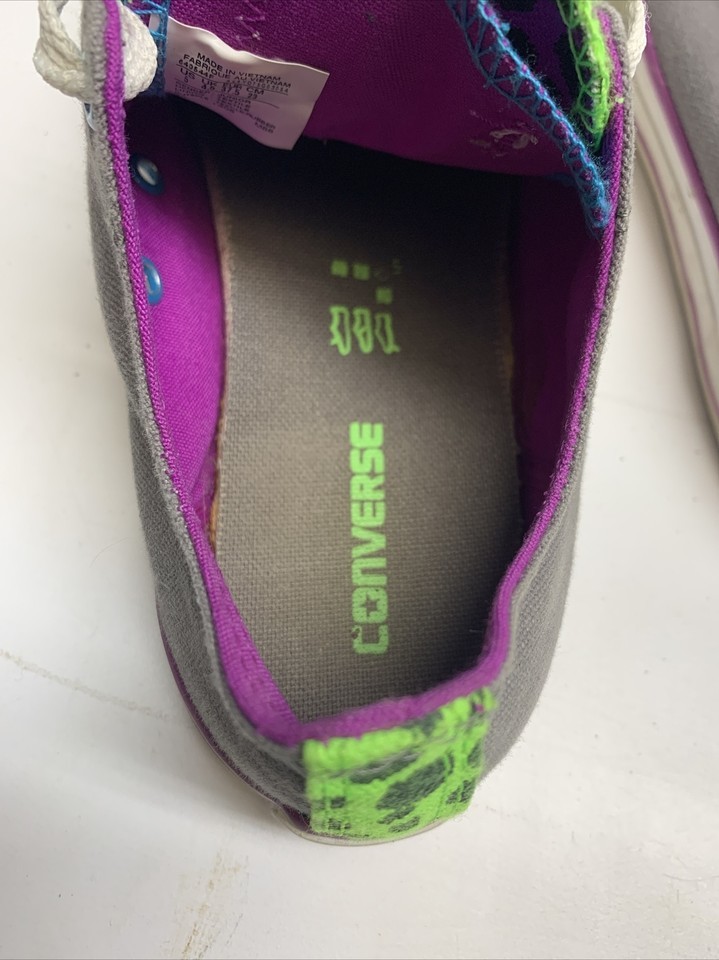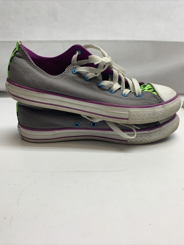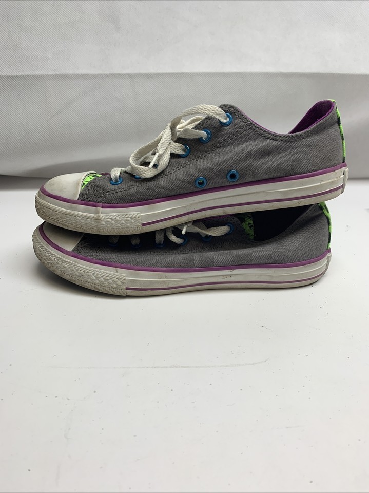 Converse Chuck Taylor Low Gray Neon Green Purple Blue Double Tongue Size 5
