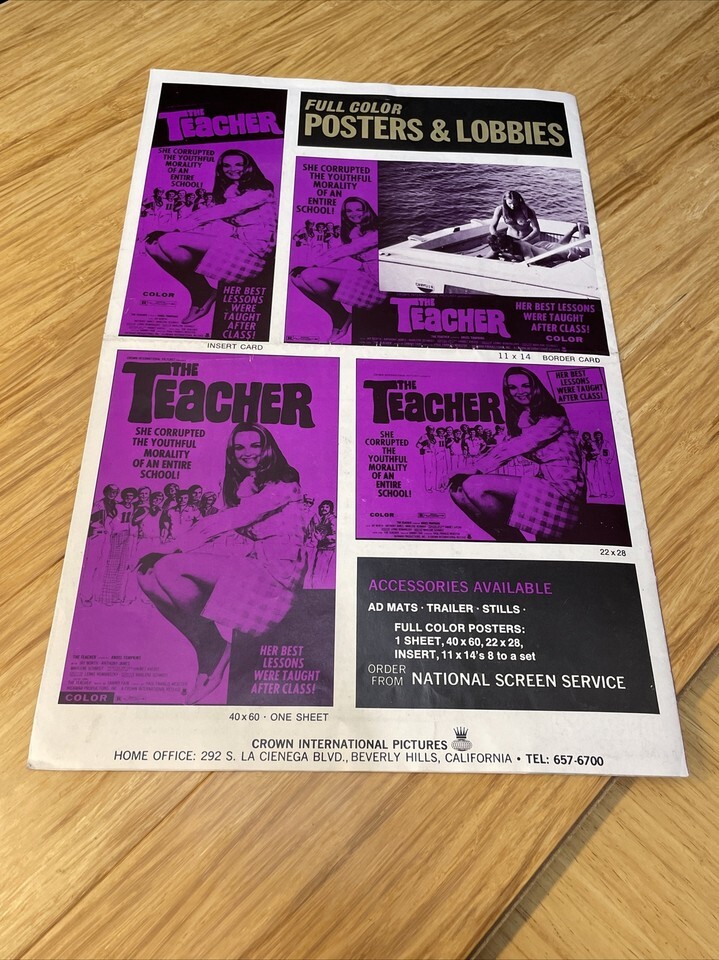 1974 The Teacher Movie Poster Press Kit Vintage Cinema KG Angel Tompkins