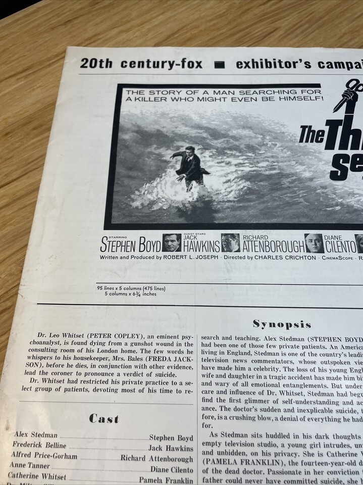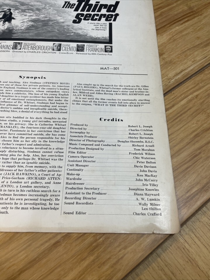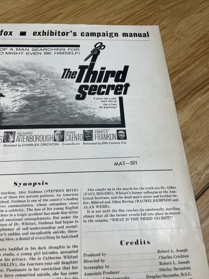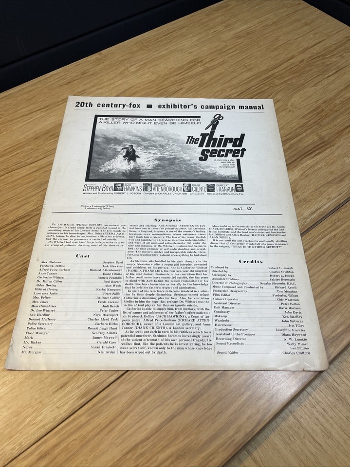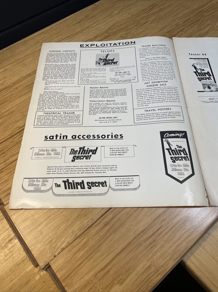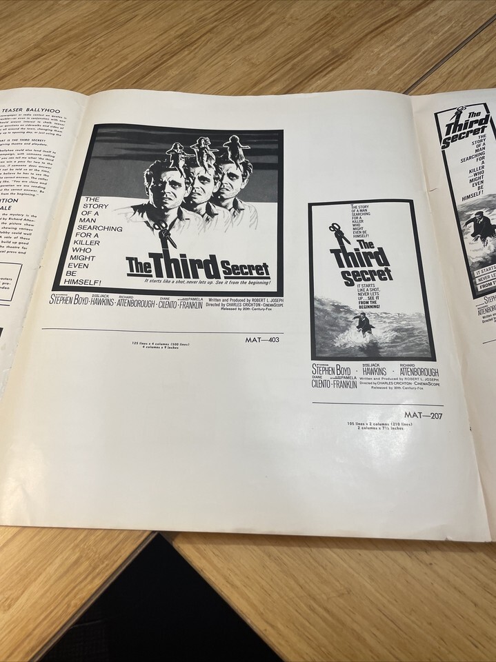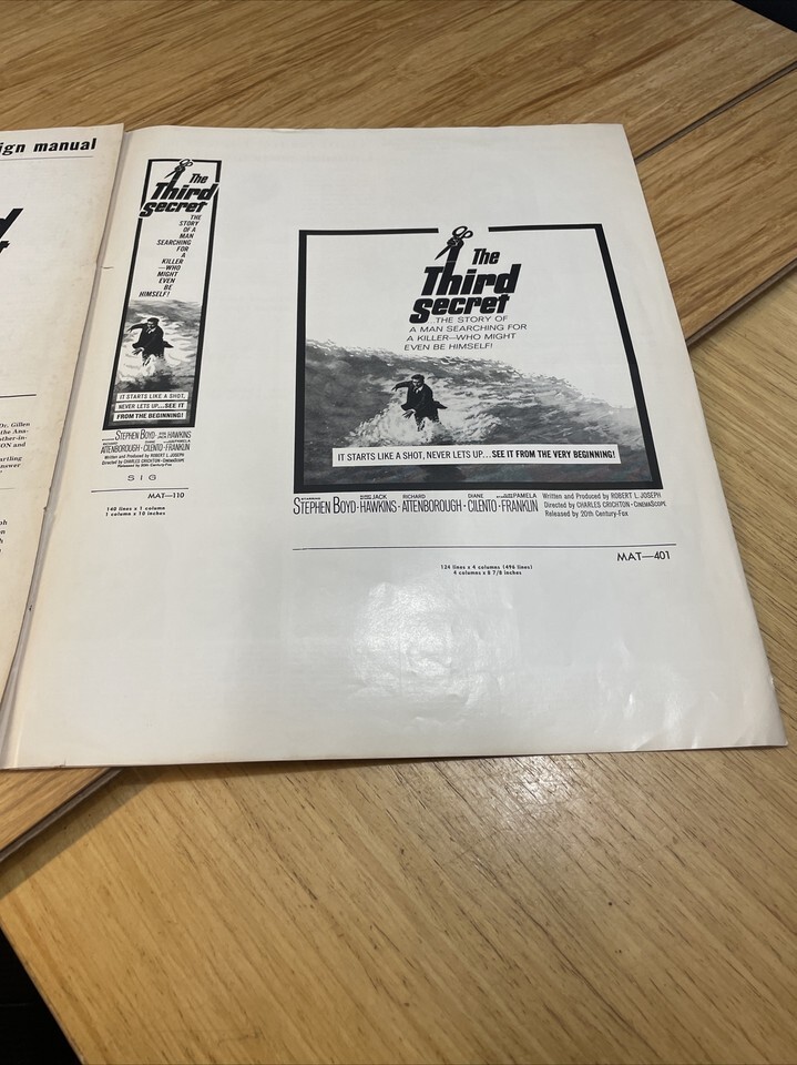 The Third Secret Press Book Kit Movie Poster 1964 KG Richard Attenborough