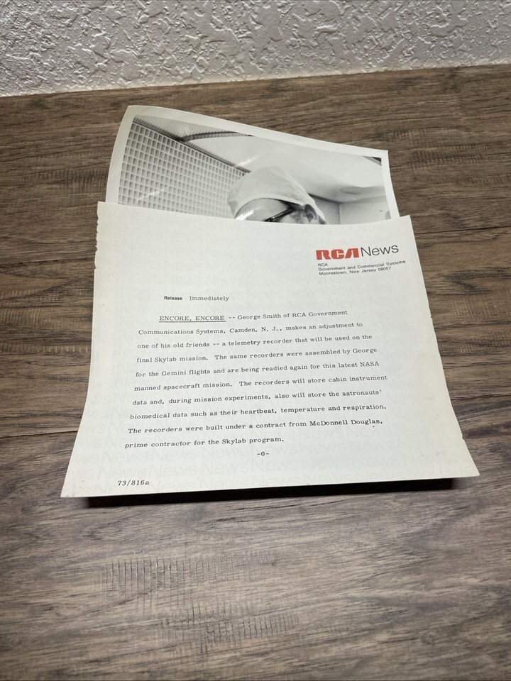 NASA Photographer Owned Skylab Photographs 8X10 RCA Press Photograph KG