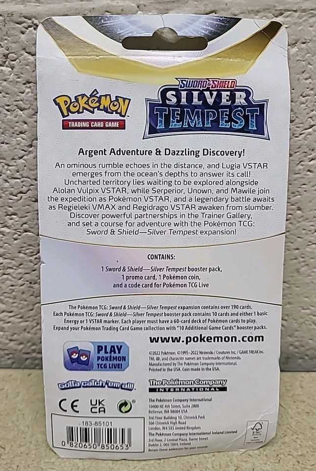 Pokemon TCG - Sealed Pack - Sword & Shield Silver Tempest Basculin W/ Coin