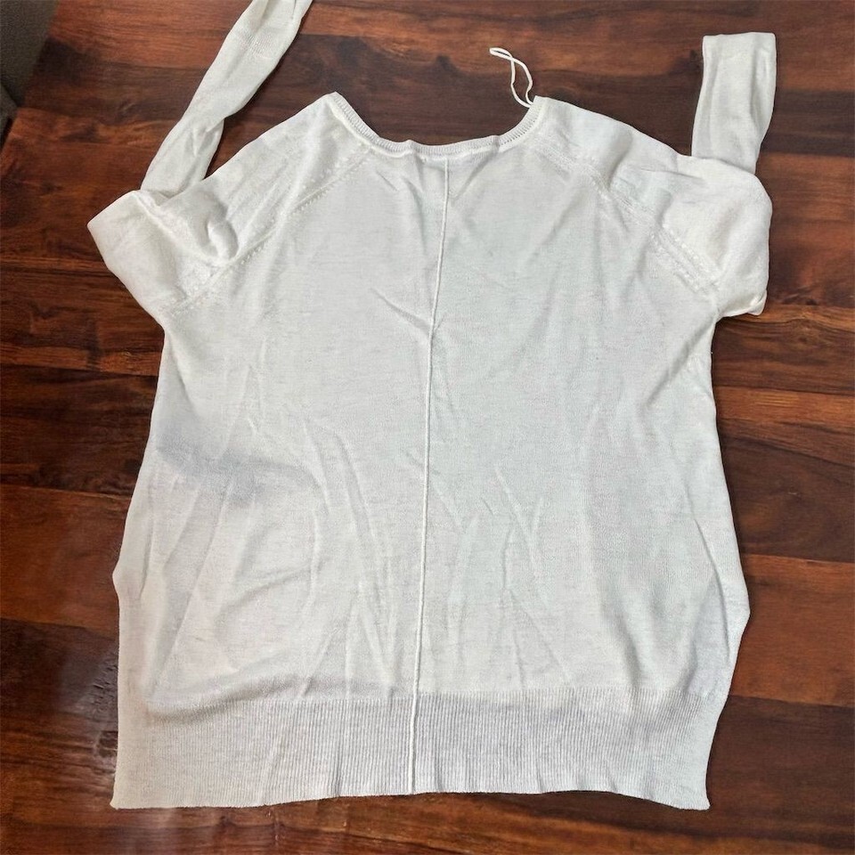 Zara Knit White Lightweight Raglan Long Sleeve Sweater Crew Neck Relaxed Fit M