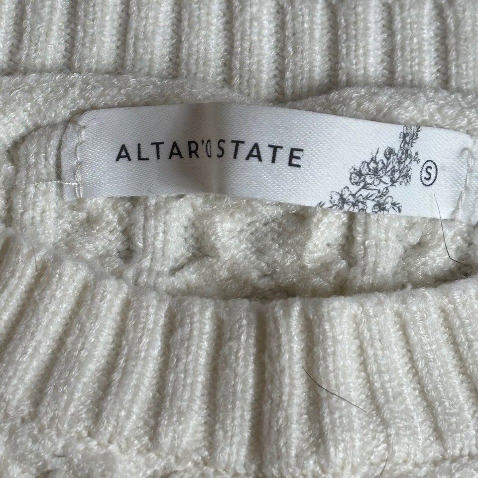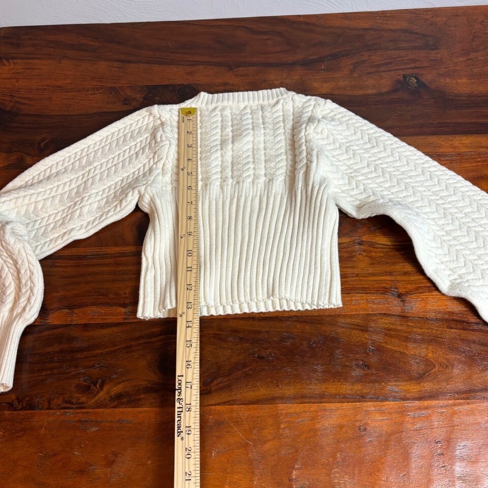 Altar State Cream Cable Knit Balloon Sleeve Cropped Sweater Top Size Small