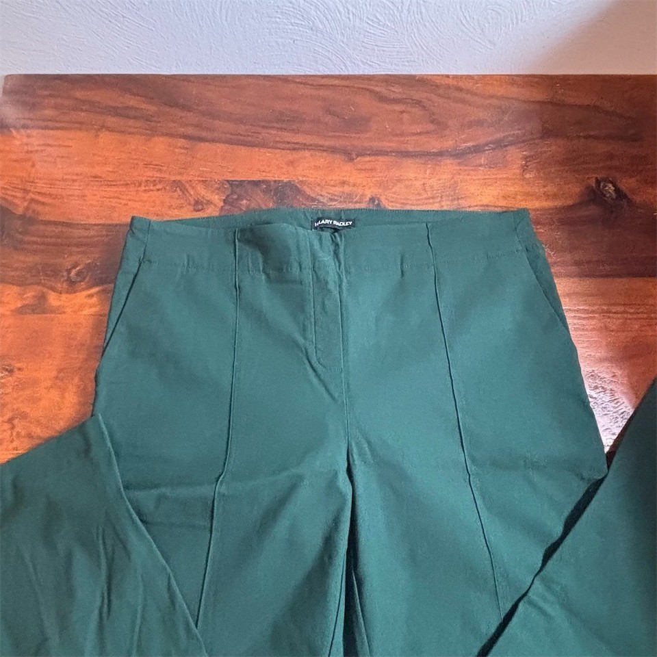 Hilary Radley Dress Pants Womens Size L Green Straight Leg Pull-On Stretch