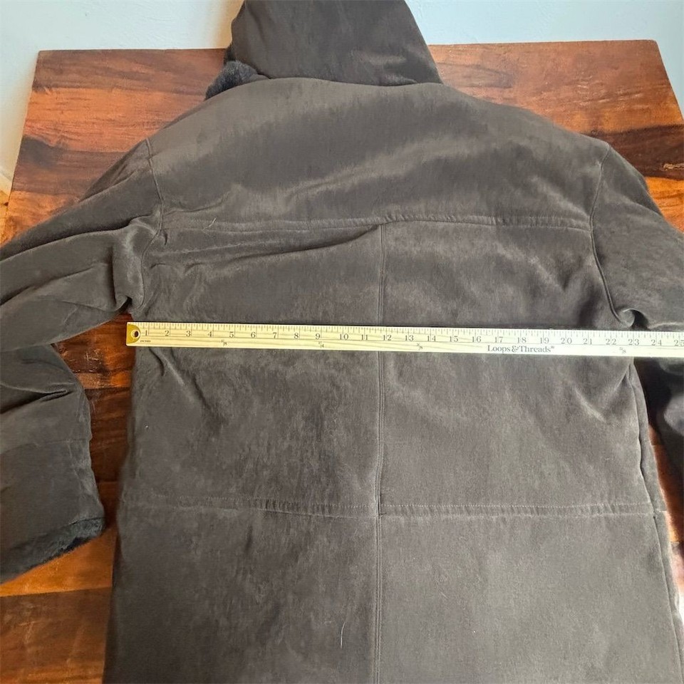 Vintage Talbots Women's Brown Hooded Faux Fur Lined Faux Suede Jacket M