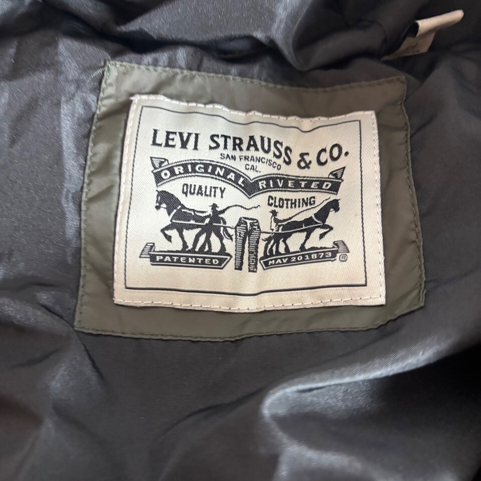 Levi Strauss Mens Olive Green Puffer Jacket Hooded Quilted Parka XL RN54163