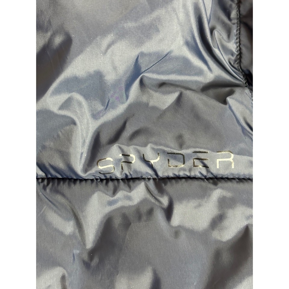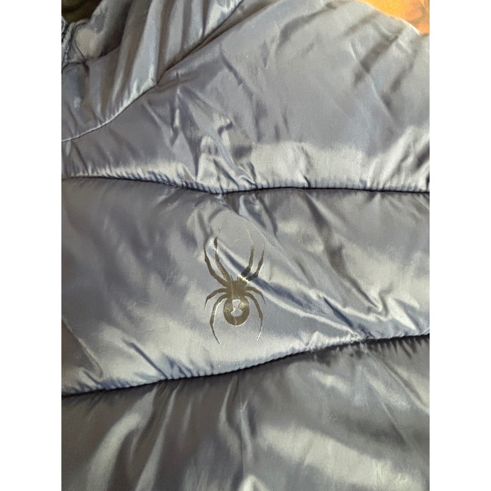 Spyder Mens Hooded Puffer Jacket Navy Blue Quilted Insulated Full Zip SPFOM043 L