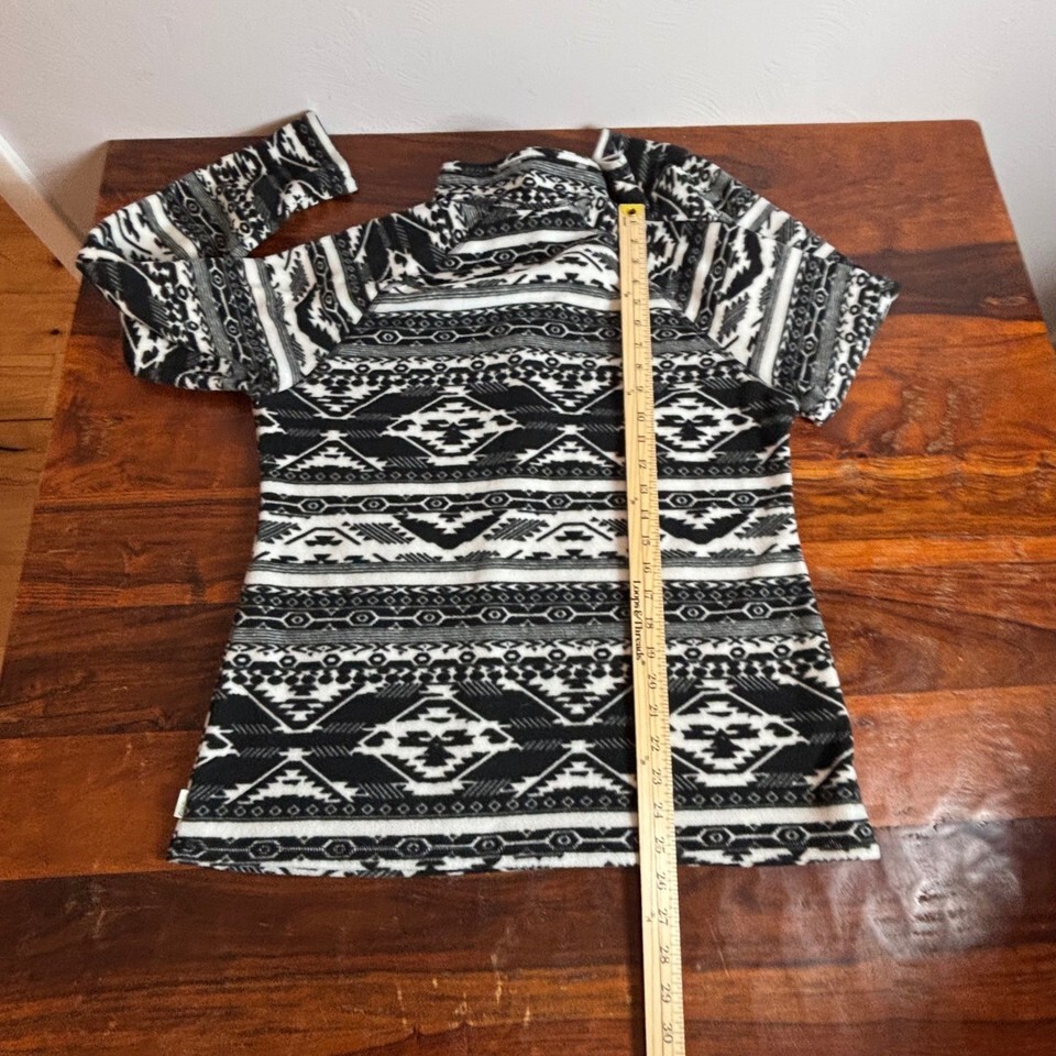 Eddie Bauer Womens Large Black White Geometric Southwestern Quarter Zip Fleece