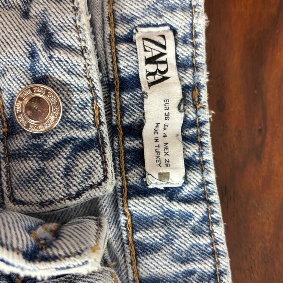 Zara Light Acid Wash High Rise Wide Leg Frayed Hem Denim Jeans Womens Size 4 26