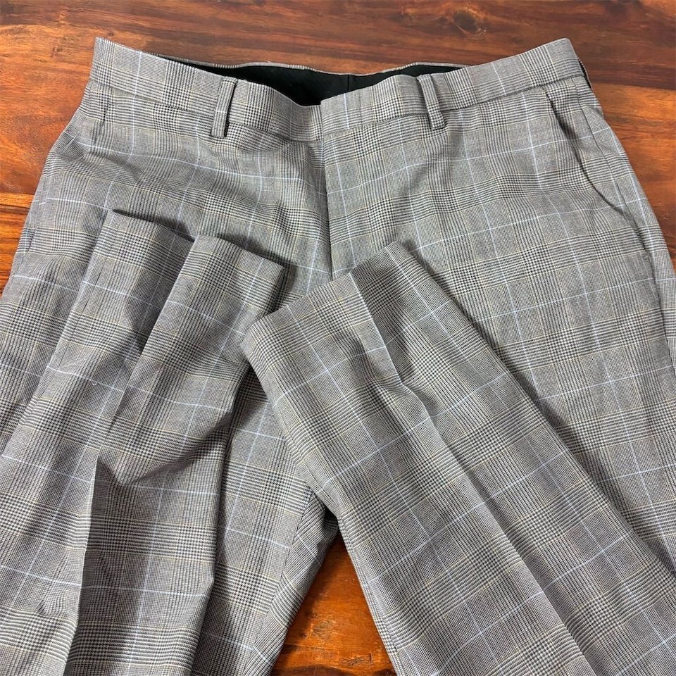 J.Crew Men's Plaid Wool Dress Pants Gray Size 34x30 Classic Fit