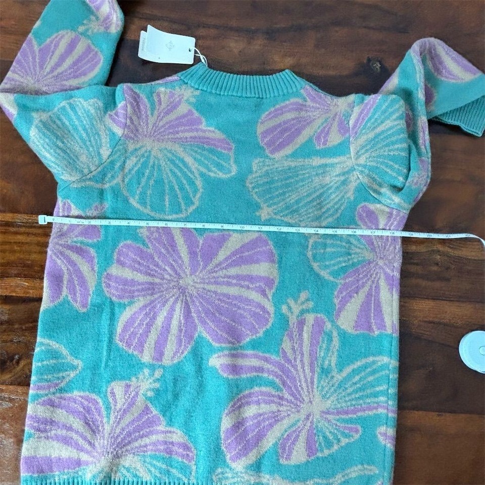 Rareism Women's XS Blue Floral Crew Neck Pullover Sweater Long Sleeve