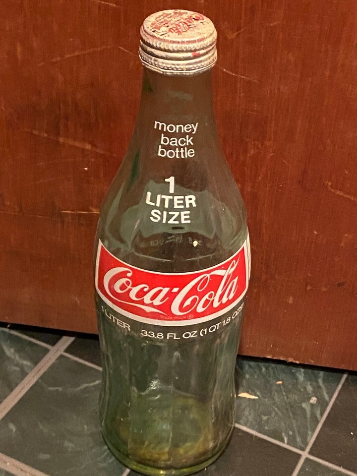 1 Coca-Cola 1 Liter 33.8oz Vintage Glass Bottle w/Cap Pre-Owned w/Wear OR3