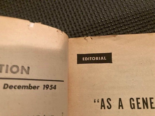 Astounding Science Fiction Pulp / Digest Vol. 54 #4 December 1954 Overall good. Scuffs on top tier of pages per images. Some cover/spine wear as shown. Owner stamped on inside page. Please refer to images.