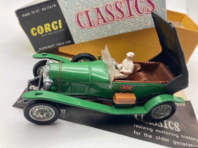 MIB Corgi Classics 1927 Bentley 3L (Le Mans Team Car) | #900 Diecast Toy Car With box, paperwork, driver. There is a label stick on one end of box (per final image). Please refer to images.