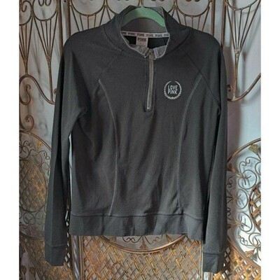 Victoria's Secret Love Pink Women's Half Zip Sweatshirt Long Sleeve Gray Size Small