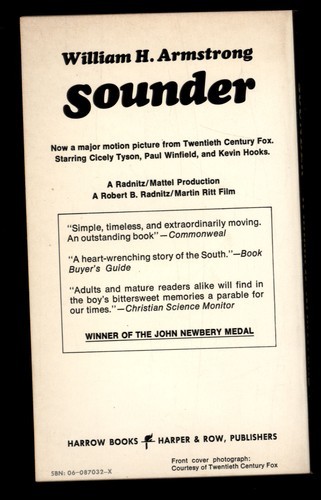 SOUNDER by William H. Armstrong *1 st 1972 Harrow Paperback movie tie-in photos