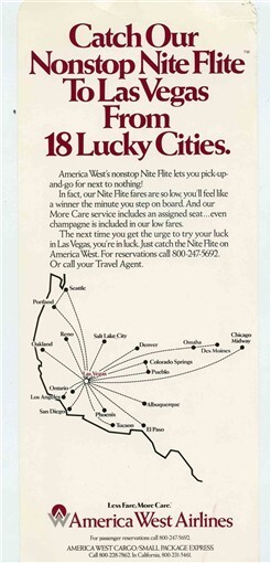 America West Airlines 18 Lucky Cities to Las Vegas Service Seattle Portland
