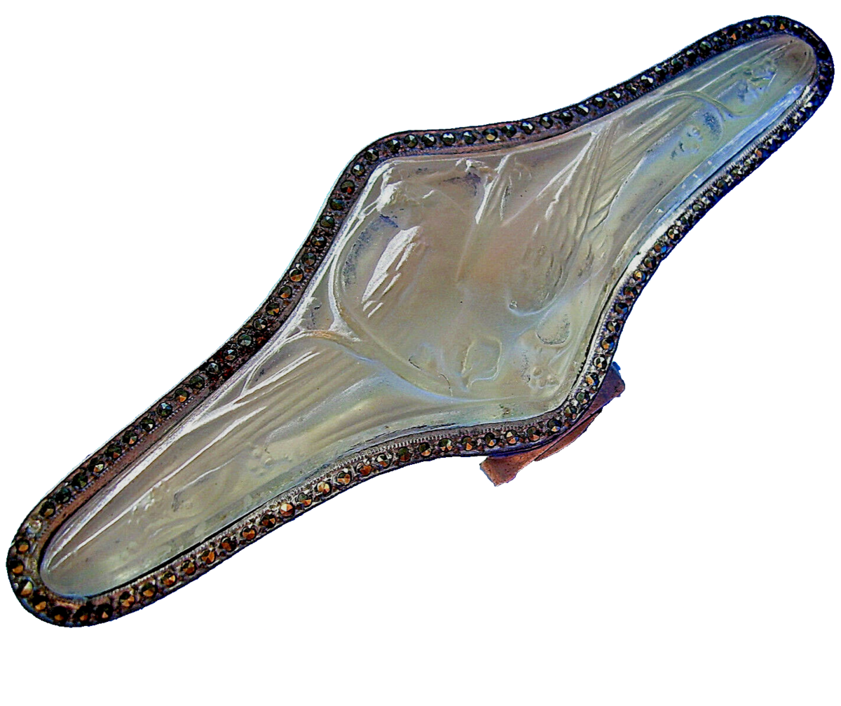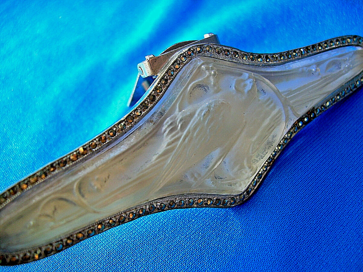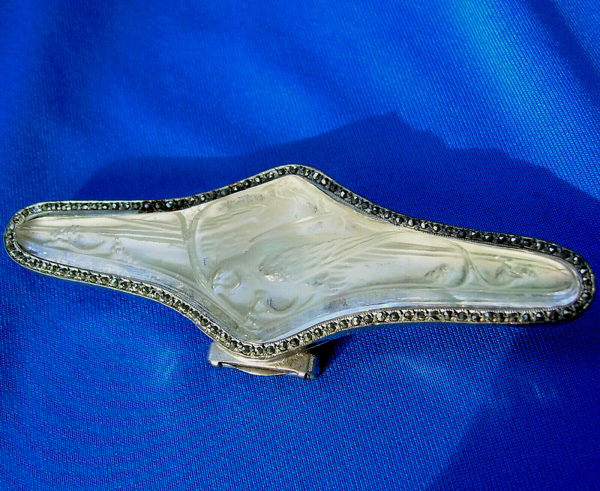 Two pheasants art nouveau Rene Lalique original brooch on metal clip.