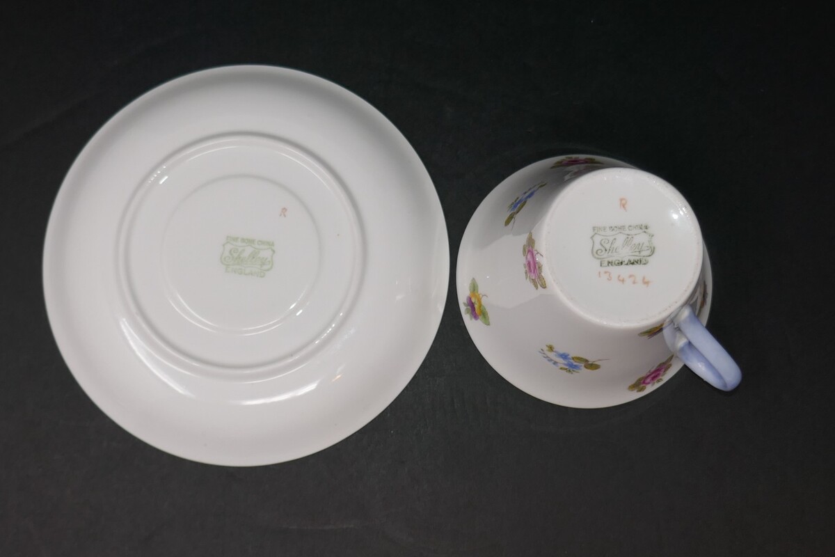 Shelley Fine Bone China England Vintage Rose Pansy Forget-Me-Not Cup & Saucer
