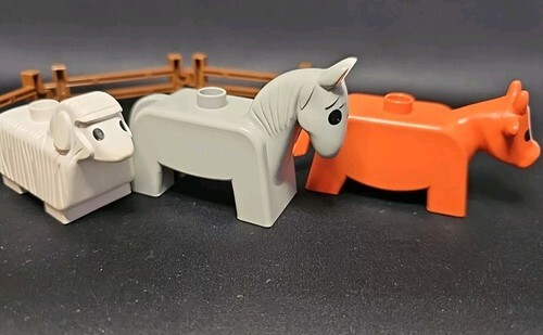 UP FOR SALE: VINTAGE Lego Duplo Farm Animals Cow Sheep Horse Fence