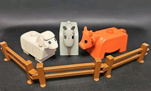 VINTAGE Lego Duplo Farm Animals Cow Sheep Horse Fence