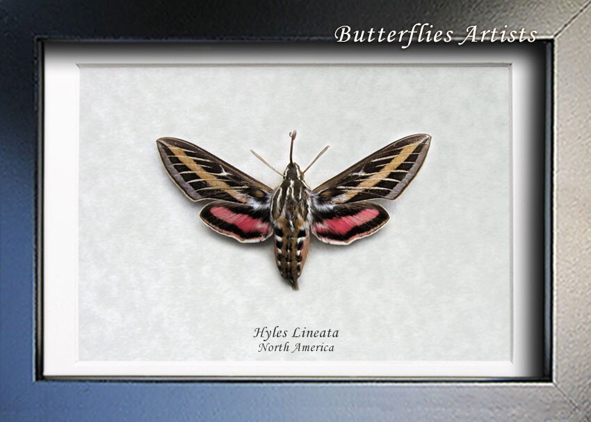 White-Lined Sphinx Hyles Lineata Real Moth Framed Entomology Shadowbox Display